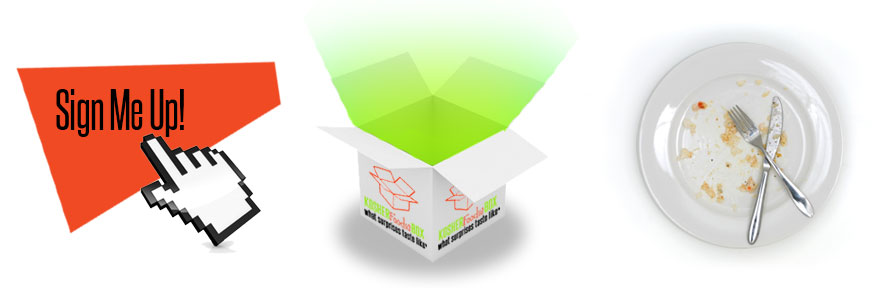That’s where we come in! Every other month we put together a surprise Kosher Foodie Box containing six single servings/generously sized samples* of the newest, most exciting, or hard to find kosher products and ship it directly to your door! You can expect an assortment of ready to eat and ready to cook foods that have been chosen by our discerning tasting panel.