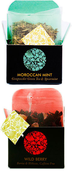 Cérémonie Mini Cubes are tea experiences in individual, beautiful crafted mini cubes. The distinctive cube package holds a mesh tea sachet that is bursting with the bold taste of whole leaf tea, fine herbs, and spices. Enjoy their two most popular flavors, Moroccan Mint, a combination of Gunpowder Green Tea & Spearmint and Wild Berry, made of Berries and Hibiscus in a caffeine free blend. Each sachet is good for 1-2 cups.